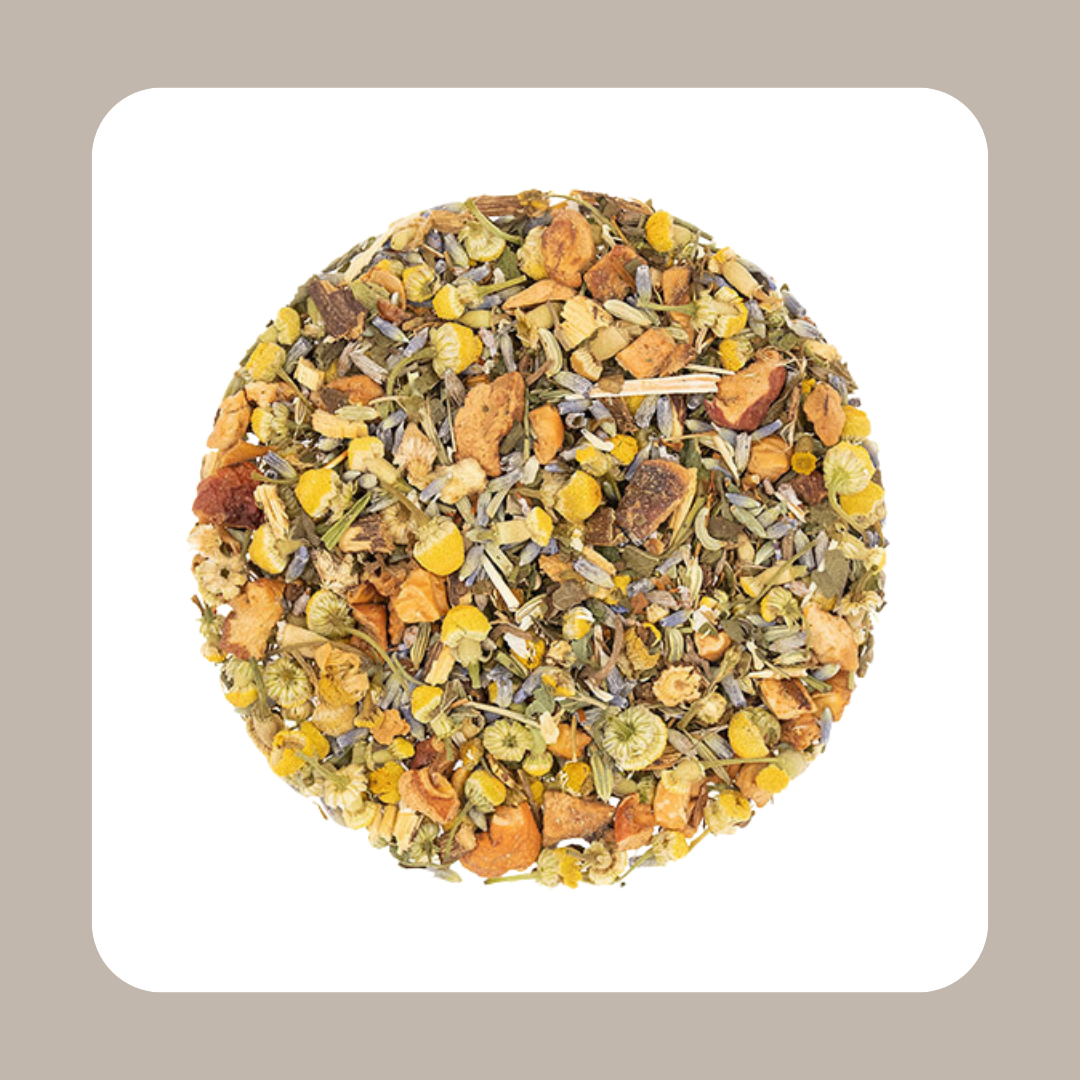 Brewing Suggestion: 1 tsp per 8 oz water | Steep 3–7 min | Enjoy before bedtime or during moments of restlessness | Best enjoyed without milk or sugar
